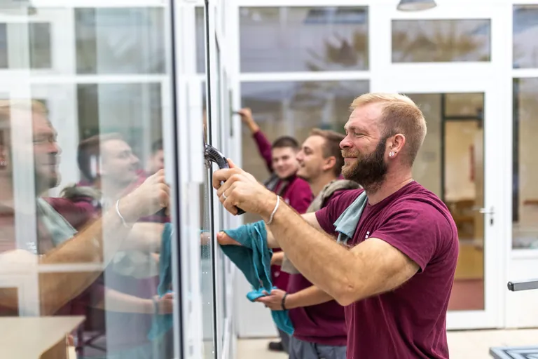 Der Berliner Unternehmensverbund Mosaik feiert Geburtstag: Seit 60 Jahren fördert das gemeinnützige Netzwerk die Inklusion von Menschen mit Behinderungen – auch im Inklusionsbetrieb Mosaik-Gebäudereinigung.