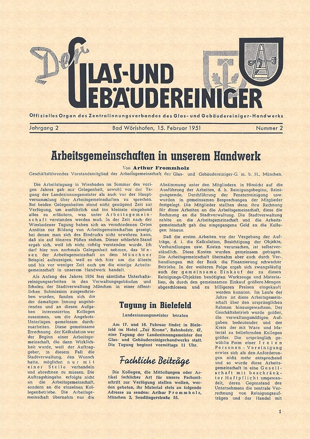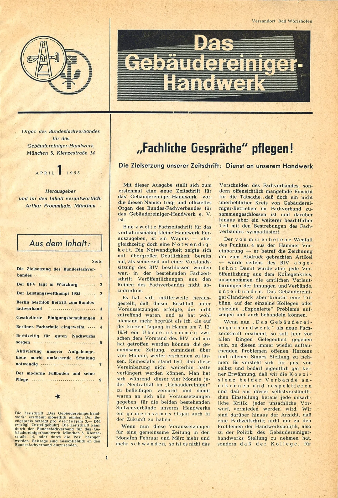 Als aus dem Hauptinnungsverband des Glas- und Gebäudereiniger-Handwerks der Zentralinnungsverband des Glas- und Gebäudereiniger-Handwerks wird, kommt es zu einem neuen Vorstoß in Sachen Fachzeitschrift. Dem Vorstand um Valentin Wieprecht (erster Vorsitzender) und Arthur Frommholz (zweiter Vorsitzender) gelingt es, Dr. Albrecht Weinschenk aus Bad Wörishofen als Verleger zu gewinnen. Die erste Ausgabe von "Der Glas- und Gebäudereiniger" als offizielles Organ des Zentralinnungsverbandes erscheint im Oktober 1950 im von Albrecht Weinschenk gegründeten Verlag "Der Glas- und Gebäudereiniger". Gedruckt wird beim Hans Holzmann Verlag (heute Holzmann Medien) in Bad Wörishofen.