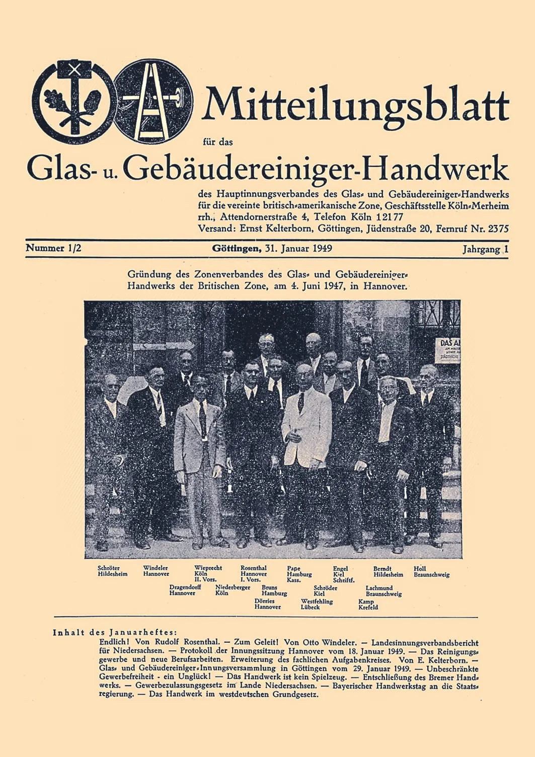 Rudolf Rosenthal, zweiter Vorsitzender des Hauptinnungsverbandes, soll das Projekt in die Wege leiten. Er wendet sich an Ernst Kelterborn. Der Göttinger Verleger hatte fast 50 Jahre zuvor die erste Verbandszeitung für das Gebäudereiniger-Handwerk ins Leben gerufen ("Internationales Centralblatt für Reinigungsinstitute und verwandte Geschäftszweige") und den Verband der Reinigungs-Instituts-Unternehmer Deutschlands (VRUD), die erste Berufsorganisation der Gebäudereiniger, gegründet. Am 31. Januar 1949 erscheint in Ernst Kelterborns Verlag das "Mitteilungsblatt für das Glas- und Gebäudereiniger-Handwerk". Es hält sich allerdings nur wenige Ausgaben und wird schließlich eingestellt.