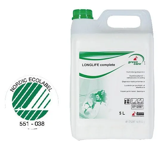 Mit Green Care Longlife Complete bietet Tana Chemie ein ganzheitlich nachhaltiges Produkt für höchste Ansprüche in puncto Langlebigkeit und Widerstandskraft von beschichteten Böden an. Das Produkt ist eine besondere, gemäß den Prinzipien einer nachhaltigen Entwicklung konzipierte Pflegedispersion für alle beschichtungsfähigen Bodenbeläge. Dank einer speziell entwickelten Kombination von Hochleistungspolymeren vereint das Produkt ausgezeichnete Wirtschaftlichkeit mit hervorragenden Materialeigenschaften. Besonders in stark frequentierten Bereichen fördert die Pflegedispersion die Widerstandskraft und Langlebigkeit beschichteter Fußböden. Sie schützt insbesondere elastische Bodenbeläge aus PVC, Linoleum oder Kautschuk mit einem hochstrapazierfähigen Schutzfilm gegen Begehspuren und schnellen Verschleiß. Zudem punktet das Produkt mit einer anwenderfreundlichen Handhabung. Eine Anwendbarkeit zum Beispiel auf restfeuchten Linoleumbelägen ermöglicht einen zeitsparenden und effizienten Einsatz.