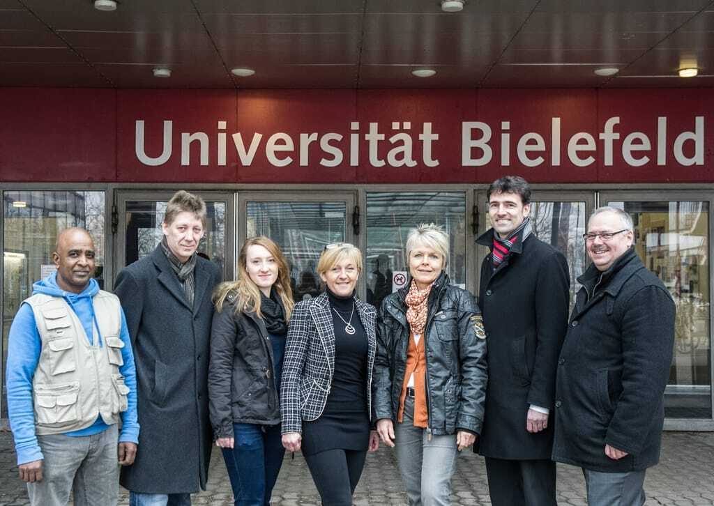 Freuen sich mit Kathrin Schumacher (3.v.re.), Ansprechpartnerin Gebäudereinigung der Universität Bielefeld, über den neuen Auftrag: A.D.U.-Geschäftsführer Peter Lienenlüke (2.v.re) sowie Objektleiter Manickam Logeswaran, Niederlassungsleiter Ralf Konieczka , die Vorarbeiterinnen Martina Broniszewska und  Jolanta Wittich und Johannes Hausmann, Leiter Kalkulation (v.li.). - © A.D.U.