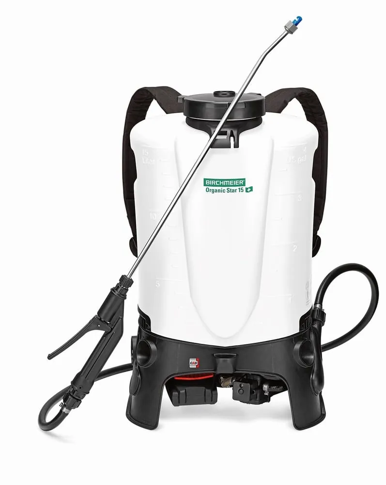 © BirchmeierDas Sprühgerät Organic Star 15 Accu von Birchmeier ist geeignet für Wirkstoffe auf Basis organischer Säuren wie Pelargon-, Nonan- oder Essigsäure (jeweils in der vom Gesetzgeber angegebenen Konzentration). Da sich diese Mittel von der Beanspruchung des Gerätes her stark von herkömmlichen Herbiziden unterscheiden, verfügt das Gerät über extra säurebeständige Dichtungen, Düse und Armaturen wie eine rostfreie Edelstahllanze und eine spezielle Herbiziddüse. Der Betriebsdruck kann stufenlos von 1–3 Bar eingestellt werden. Die intelligente Druckregelung hält den Druck während des Arbeitens konstant. Das daraus resultierende gleichmäßige Sprühbild optimiert die Wirkung und führt zu weniger Mittelverbrauch. Das Gerät ist mit einem 18-V-Li-Power/2-Ah-CAS-Akku ausgestattet. Bei einem Druck von einem Bar können bis zu 102 Liter Spritzmittel bei einer Arbeitsdauer von mehr als fünf Stunden ausgebracht werden. -