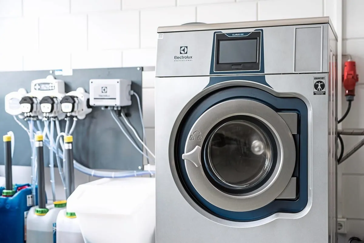 © ElectroluxDie Eigenschaften der Profi-Mopp-Waschmaschine von Electrolux Professional der Linie 6000 sind auf den Bedarf von Gebäudereinigern abgestimmt. So wurde zum Beispiel zusätzlich ein Vier-Wege-Ventil in die Mopp-Waschmaschine eingebaut. Es sorgt dafür, dass Spülwasser direkt in die Trommel gelangt und nicht über den Waschmittelkasten zugeführt wird, der oft mit Keimen belastet ist. Weitere wichtige Eigenschaften sind spezielle Heizstäbe, spezifische Waschprogramme für verschiedene Arten von Reinigungstextilien sowie die Möglichkeit, sie vorzupräparieren – bis zu einer Vorrüstung für eine Dosieranlage. Die ClarusVibe-Steuerung ermöglicht eine intuitive Bedienbarkeit. -