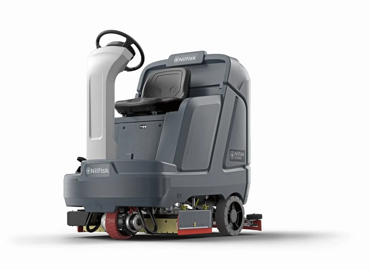 © NilfiskMit ihrer Manövrierfähigkeit und Reinigungsleistung sowie durchdachtem Anwenderkomfort ist die neue Scheuersaugmaschine SC5000 von Nilfisk auf mittelgroßen Produktions- und Lagerflächen sowie in Parkhäusern und im Einzelhandel zu Hause. Im aktuellen Marktvergleich soll die Maschine laut Hersteller dank einer Tankkapazität von 140 Litern, einer Betriebsgeschwindigkeit von bis zu 8,5 Stundenkilometern sowie einer Batterielaufzeit von maximal 4,5 Stunden rund 30 Prozent mehr Produktivität pro Tankfüllung erreichen. Auch bei Steigungen von bis zu zwölf Prozent befreien die Teller- (86 Zentimeter Arbeitsbreite) oder Zylinderbürsten (81 beziehungsweise 91 Zentimeter Arbeitsbreite) der SC5000 den Untergrund von Staub und Schmutz. Intuitives Maschinenhandling sowie verschiedene Funktionen für die zusätzliche Sicherheit und Produktivitätssteigerung runden das Modell ab. -
