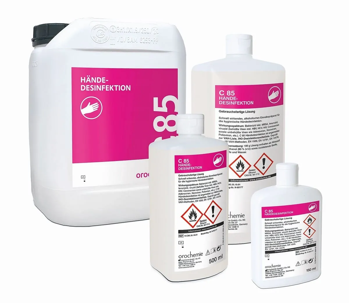 © OrochemieDie gebrauchsfertige Händedesinfektion C 85 ist ein alkoholisches Einreibepräparat, wirksam gegen Bakterien, Hefepilze und alle Viren (behüllte und unbehüllte Viren). Das Produkt enthält rückfettende Stoffe und ist parfüm- und farbstofffrei. Auch bei häufiger Anwendung zeigt die Händedesinfektion nach Herstellerangaben eine sehr gute Hautverträglichkeit. Ab sofort bietet Orochemie auch Webinare zu verschiedenen Themen an: Hygieneschulungen für die Bereiche Pflege und Hauswirtschaft, MRE, Kindereinrichtungen und mehr. Man benötigt entweder einen Computer, ein Smartphone oder Tablet sowie Internetzugang und Lautsprecher. -