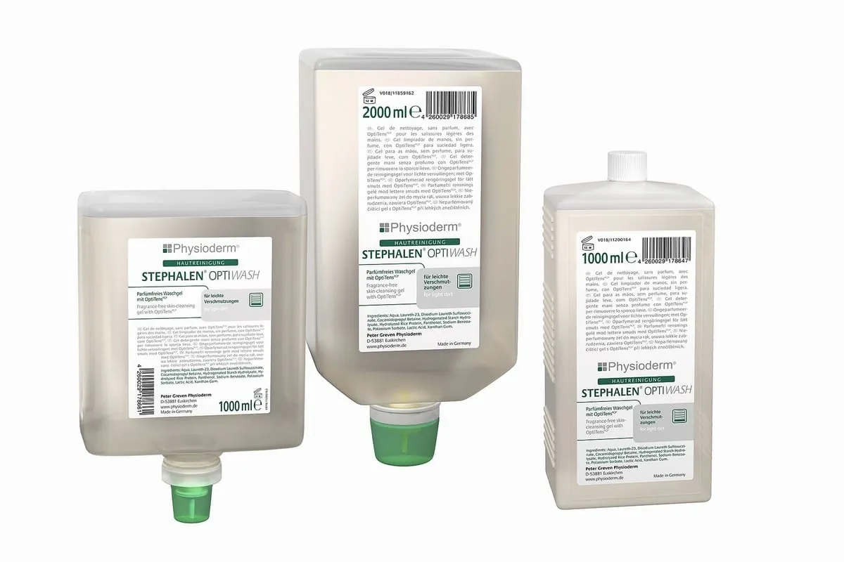 © Peter Greven Physiodermn der Corona-Pandemie sind Händedesinfektion und das richtige Händewaschen wichtige Schutzmaßnahmen. Das Problem: Desinfektionsmittel, Reinigungsmittel und auch Wasser entziehen der Haut Fette und können so auf Dauer zu Hautschädigungen führen. Von Hautkrankheiten betroffen sind vor allem Beschäftigte in Branchen, in denen die Hautbelastung ohnehin sehr hoch ist, etwa in der Reinigungsbranche. Deswegen ist es wichtig, Hautschutz- und -pflegeprodukte zu nutzen und auf besonders hautverträgliche Hautreiniger zu achten. Hier bietet Peter Greven Physioderm (PGP) mit einer neu entwickelten Hautreinigergeneration eine Lösung. Sie basiert auf der patentierten Tensidkombination OptiTens, die besonders hautfreundlich und wirksam zugleich ist. -