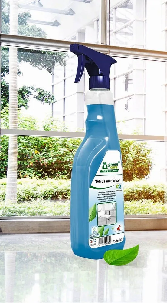© TanaAb Dezember wird das Sortiment der gebrauchsfertigen Reiniger von Tana um Tanet multiclean ergänzt. Das neue Produkt passt zu dem Bestreben, unter der Marke Green Care Professional nachhaltigere und kreislauffähige Produkte mit biologisch abbaubaren Rezepturen einzuführen. Die Flasche besteht zu 100 Prozent aus Altplastik. Der Allzweckreiniger weist antistatische und schnelltrocknende Eigenschaften auf. Das Sortiment der gebrauchsfertigen Reiniger bietet für jede Reinigungsaufgabe das passende Produkt in einer Triggerflasche zur sicheren und schnellen Anwendung. Durch die direkte Anwendbarkeit ohne notwendige Dosierung bedarf es keiner Schulung. -