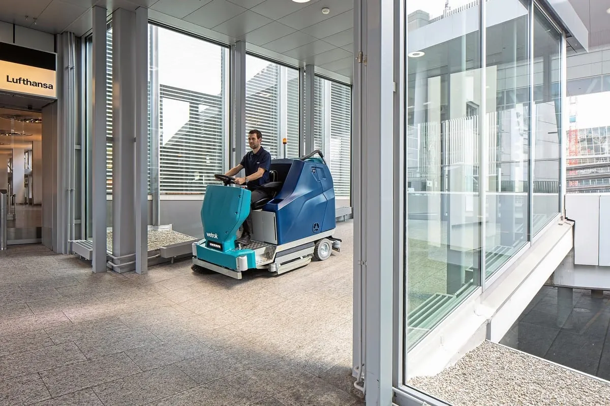 © WetrokFür die Bodenreinigung in Bahnhofshallen, Logistikzentren oder Parkhäusern bietet Wetrok jetzt die Aufsitz-Scheuersaugmaschine Drivematic Deluxe. Sie verfügt über einen 200-Liter-Frischwassertank, ihre Einsatzzeit wird mit vier Stunden angegeben, bei einer Geschwindigkeit von bis zu neun Stundenkilometern. Dabei werden Steigungen von bis zu 20 Prozent bewältigt. Um den losen Schmutz kümmert sich ein optional erhältlicher Seitenbesen, während die Sprühpistole und die optional erhältliche Handabsaugung maschinell nicht erreichbare Stellen zugänglich machen. Für Sicherheit sorgen ein Sicherheitslicht und eine LED-Frontleuchte. Wetroks Sortiment an Aufsitz-Scheuersaugern umfasst nun drei Maschinen für verschiedene Einsatzbereiche: Drivematic Delight (enge Bereiche), Drivematic Delarge (größere Flächen) und Drivematic Deluxe (große Areale). -