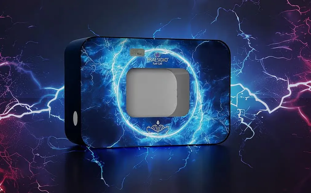 Kategorie Gesundheit und Hygiene. Ausgewählt wurden ein intelligenter Schrank für die Dekontamination und Trocknung von PSA (Novven 3) von JVD, ein brennstoffzellenbetriebener Desinfektionsmittelspender (Praesidio Fuell Cell) von Ophardt und ein ergonomisches System zur Dekontamination von Rollrädern (Traxero Radreiniger) von Vileda.