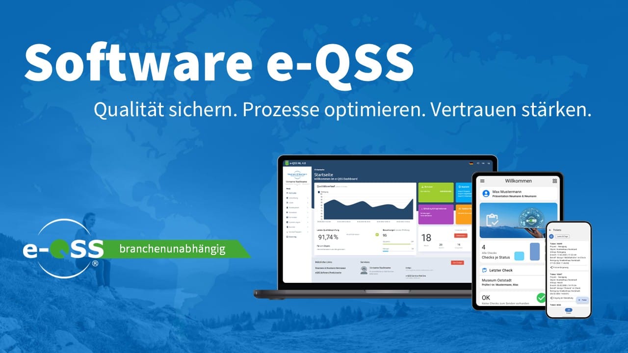 e-QSS ist nach DIN EN 13549 registriert und manipulationssicher. Führende Unternehmen aus Bereichen wie Facility Management, Gebäudereinigung, Automobilindustrie, Lebensmittel- und Pharmaproduktion (GMP) sowie Hotellerie vertrauen seit Jahren auf e-QSS. Zahlreiche Spitzenreferenzen im In- und Ausland belegen den Erfolg der Lösung.