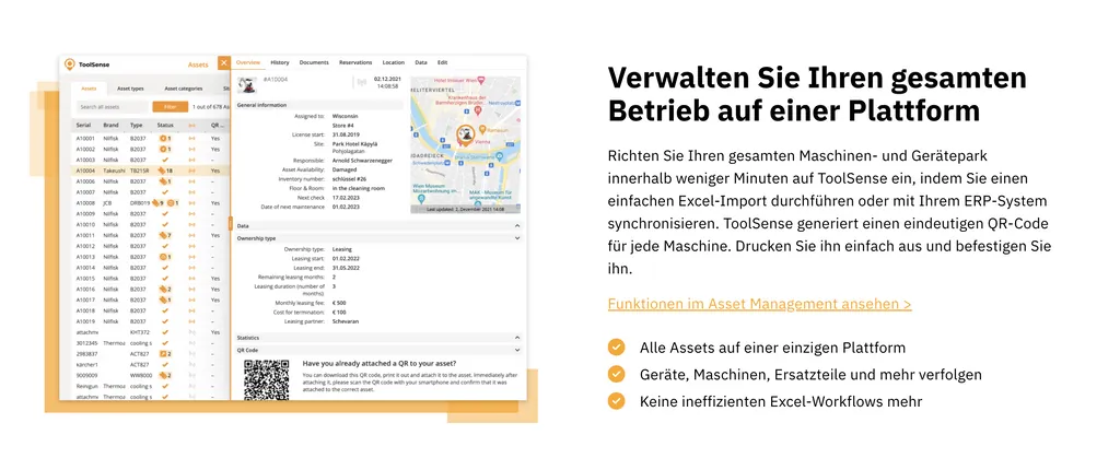 Verwalten Sie all Ihre Maschinen, Geräte, Roboter und Ihren Fuhrpark mit ToolSense: Kosten senken & Effizienz steigern