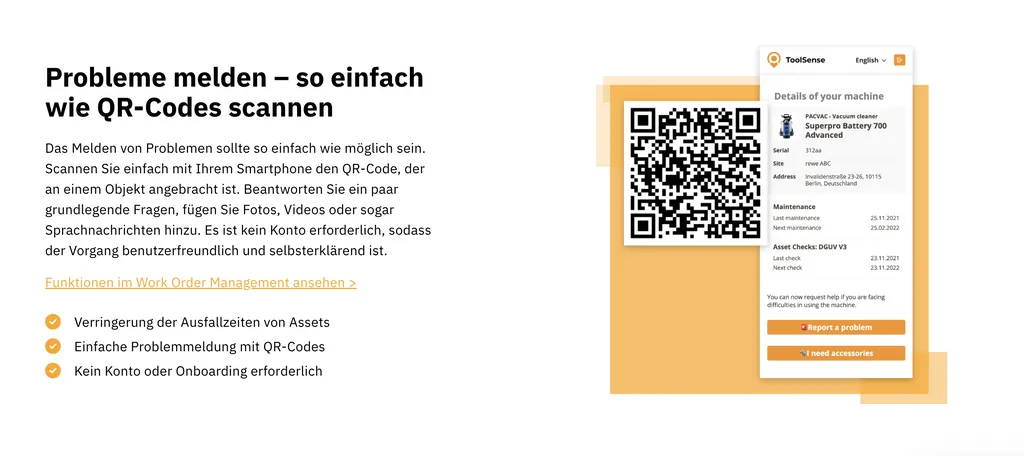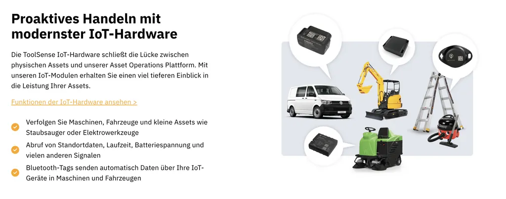 Starten Sie jetzt: Besuchen Sie uns unter www.toolsense.io und verwalten Sie Ihre Maschinen, Geräte und Fuhrpark mit ToolSense.