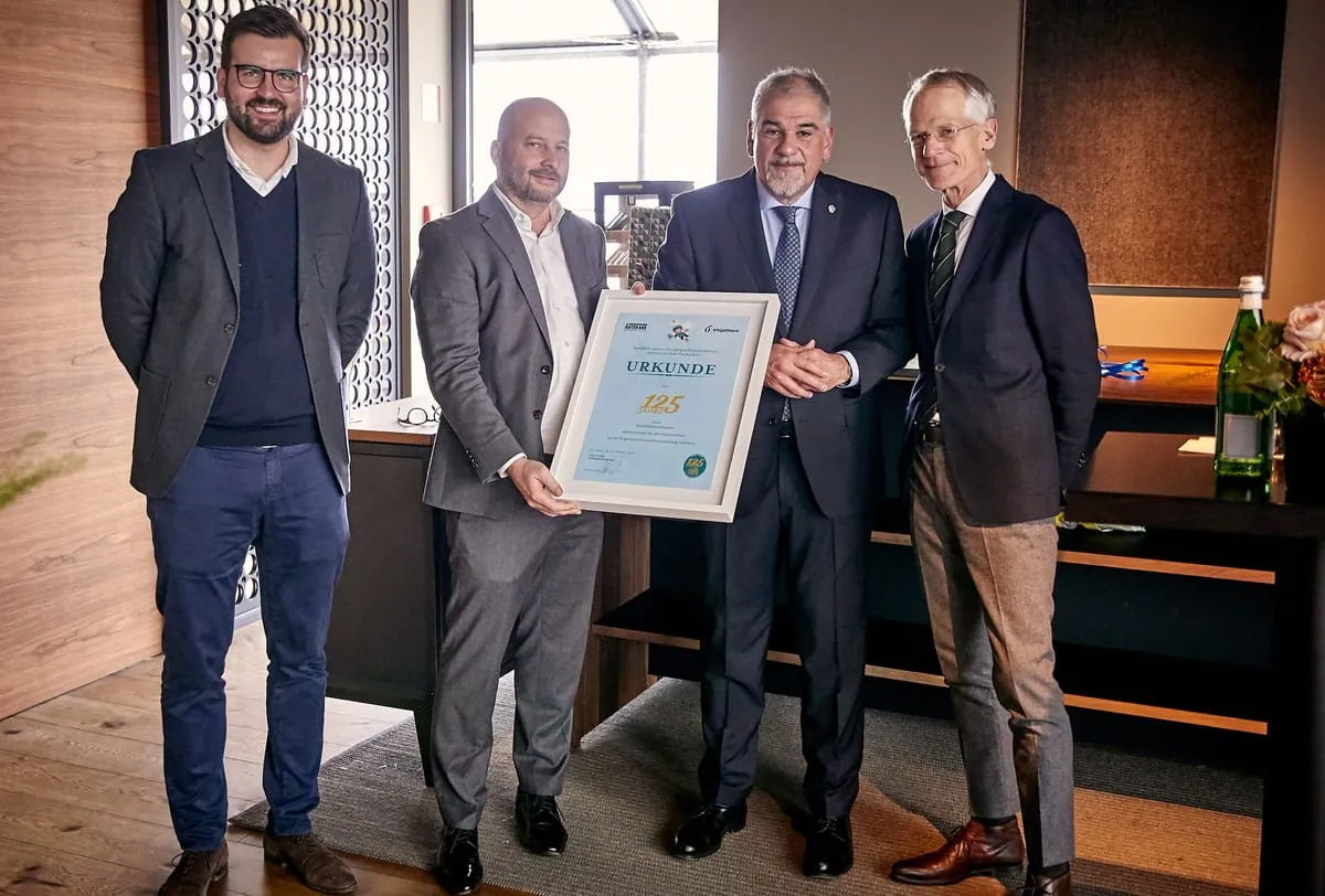 Fabian Engelhorn, Simon Engelhorn und Andreas Hilgenstock (Engelhorn-Geschäftsführung) waren ebenso zur Feier gekommen wie BIV-Geschäftsführer Johannes Bungart und Manfred Schnabel, Präsident der IHK Mannheim. Grußworte überbrachten Ministerialrat Bernd Scherrer, Wirtschaftsministerium Baden-Württemberg, und Christiane Ram, Leiterin der Wirtschaftsförderung der Stadt Mannheim, Fabian Engelhorn, Geschäftsführer Engelhorn, Christian Berg, stellvertretender Hauptgeschäftsführer der Handwerkskammer Rhein-Neckar-Odenwald, und Thomas Conrady, Landesinnungsmeister der Landesinnung Baden-Württemberg. Urkunden überreichten Thomas Conrady für die Landesinnung und Christian Berg für die Handwerkskammer Rhein-Neckar-Odenwald. Auch Andreas Ank brachte eine Urkunde mit: Er dankte damit der Geschäftsführung von Engelhorn Mode für die außergewöhnlich treue Geschäftsbeziehung über vier Generationen.