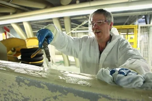 Mit der ersten Version des Reinigers war dann der für die technische Reinigung zuständige Dienstleister Asrodent aus Salzgitter in der Lage, die Shuttles sehr schnell in einen Zustand zu versetzen, der Prozesssicherheit garantierte. Asrodent führt die anspruchsvolle technische Reinigung aller Anlagen in der Lackiererei durch. Dazu gehören auch Filterwechsel etc. Kenntnisse der Prozesse sind da Grundvoraussetzung. Seither - es sind inzwischen drei Jahre - wurde das Produkt laufend optimiert und an sich verändernde Gegebenheiten angepasst, z.B. an die Zusammensetzung der Lacke. Dazu gehört auch, dass jede Charge vor der Auslieferung darauf geprüft wird, ob die Lackverträglichkeit gegeben ist: sowohl die eingesetzten Rohstoffe als auch das Endprodukt.