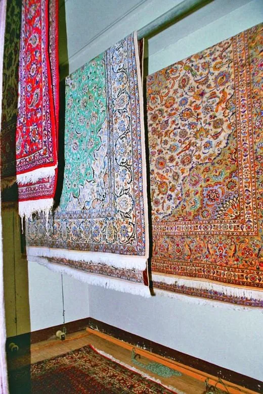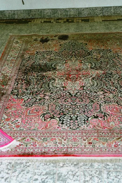 Isfahan-Teppiche (Iran) neigen im Rottonbereich häufig zum Ausbluten, wenn sie mit Wasser in Berührung kommen. Die Farben verlaufen dann und führen zu unumkehrbaren Verfärbungen in den helleren Bereichen. Um vor solchen Überraschungen sicher zu sein, empfiehlt der Experte für Orient- und antike Teppiche die Prüfung der Farbechtheit an einer kleinen Stelle der roten Wolle. Bleibt ein mit Wasser angefeuchtetes Baumwolltuch weiß, kann mit einem leicht alkalischen Waschmittel gearbeitet werden. Verfärbt sich das Tuch hingegen rosa, erfolgt die Wäsche in einem leicht sauren pH-Bereich. Doch ein Wermutstropfen bleibt: Die Farben lassen sich auf diese Weise zwar erhalten, aber der Schmutz im Teppich kann nicht richtig entfernt werden.