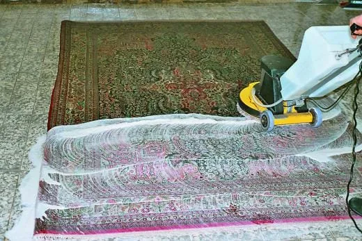 Aufgrund ihrer langjährigen Erfahrungen speziell mit Orientteppichen zählt die Massis GmbH in Hamburg nicht nur Teppichhändler, sondern auch Museen zu ihren Kunden. Bereits bei der Warenannahme erfahren sie, ob sie mit Einschränkungen bei der Wäsche zu rechnen haben. Der Fachmann weiß: „Grundsätzlich müssen alle Teppiche zu Beginn sorgfältig entstaubt werden. Dazu kommen sie bei uns in eine spezielle Entstaubungstrommel. Durch das Rotieren lässt sich ein großer Teil des Großschmutzes entfernen. Bei sehr alten Teppichen aber können wir aufgrund der hohen Mechanik eine Vorentstaubung nicht durchführen. Sie würden an den Kanten oder an dünn gewordenen Stellen einreißen.“ Der Entstaubung schließt sich die Wäsche an. Dazu wird der Teppich von beiden Seiten mit viel Wasser abgespritzt, wobei der tief liegende Schmutz allmählich an die Oberfläche wandert. Danach wird das Wasser abgezogen und das Teppichwaschmittel per Hand oder einem Bürstgerät auf den Teppich aufgetragen.