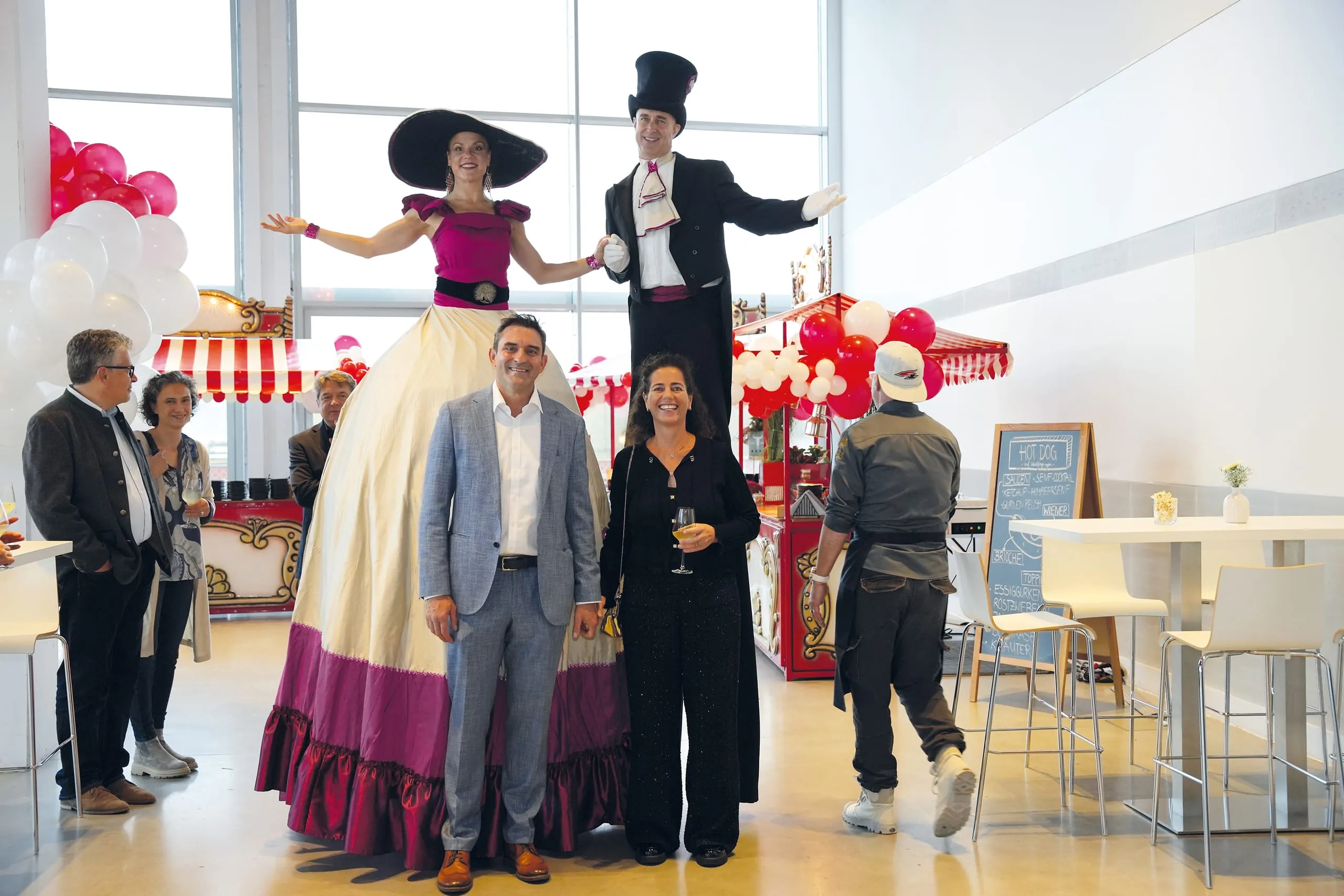 Gaukler, Stelzenläufer und Jahrmarktstände gehörten zu den Highlights der Feier. Vorne zu sehen: Richard und Silvia Orthuber.