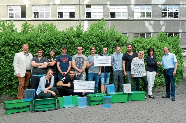 Nach einem halben Jahr Planungs- und Ausführungsarbeit hat die Mittelstufe der Braunschweiger Berufsschulklasse Gebäudereinigung mit ihrem Klassenlehrer Ekkehard Prepens die Früchte ihrer Arbeit ernten können. Burkhard Räcker, Geschäftsführer der Landesinnung in Hannover, und Lehrlingswartin Marion Presek-Haster überreichten einen symbolischen Scheck in Höhe von 1.000 Euro. Die beiden in Braunschweig ansässigen Gebäudereinigungsunternehmen Hans Schulz und W. Buttmann hatten die ausgelobte Prämie der Innung aufgestockt. Auch Christina Culina, stellvertretende Schulleiterin, und die Koordinatorin der Fachgruppe Bautechnik, Kim Königsmann, würdigten das Engagement der Auszubildenden und die gute Zusammenarbeit von Innung und Berufsschule, die eine Umsetzung der Idee erst möglich gemacht habe.