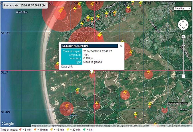 Der Wetterdienst MeteoGroup bietet als neuestes Produkt LightningTracker an. Es dient der Blitzortung und informiert in Echtzeit über Blitze. Wetterabhängige Branchen werden dabei unterstützt, potentielle Gefahren besser einzuschätzen und frühzeitig entsprechende Maßnahmen zu ergreifen. Ein dichtes Netzwerk an Blitzsensoren und eine fortschrittliche Ortungstechnologie sorgen dafür, dass selbst schwache Signale lokalisiert werden können. Ein zweites Ortungsnetzwerk sorgt für optimale Abdeckung und Ausfallsicherheit. Warnorte, Alarm- und Empfängereinstellungen können komplett individuell eingerichtet werden.