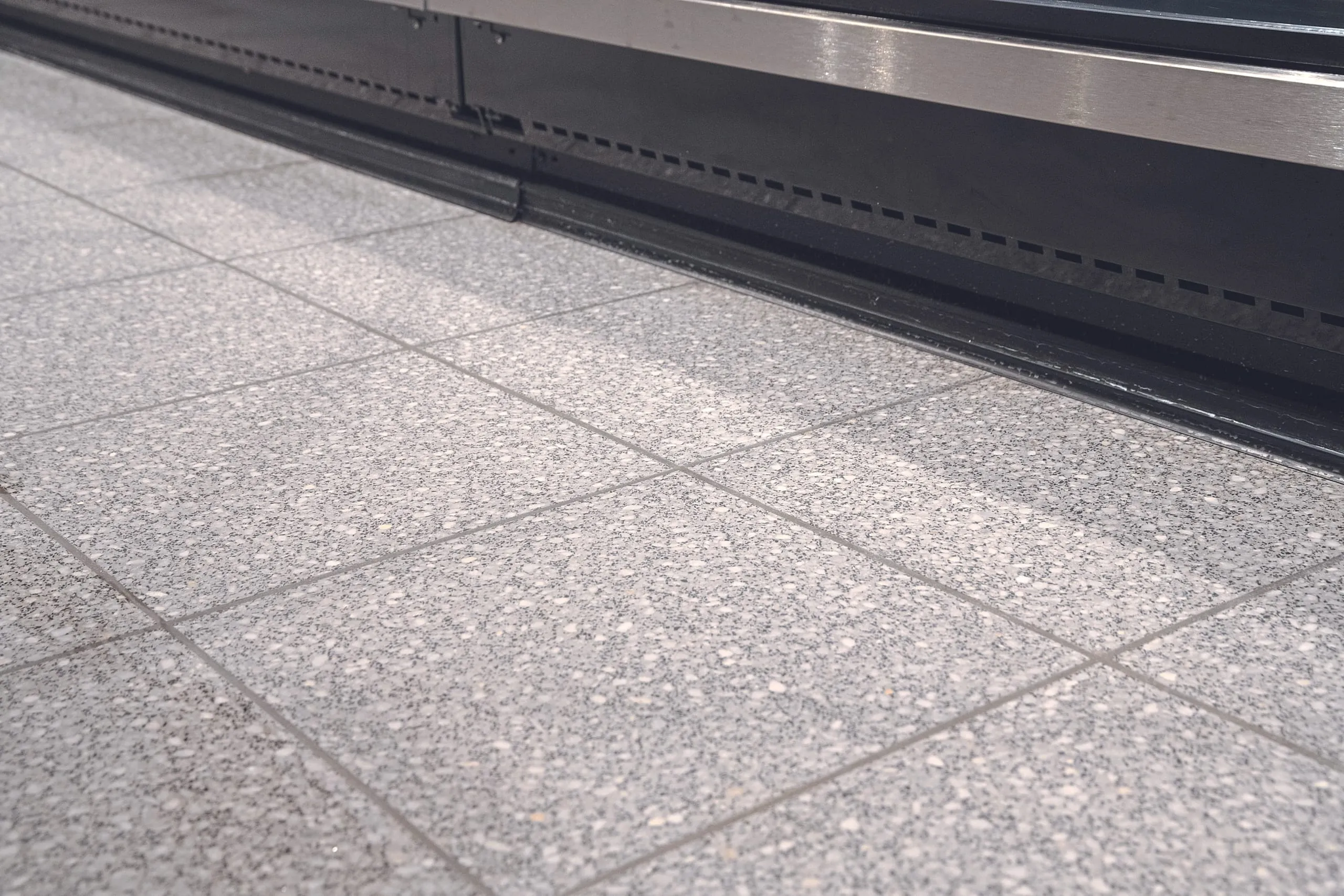 Im ersten Schritt der Fußbodensanierung wurden andersartige Beläge wie vollflächig verklebte textile Beläge, Laminat, Parkett, Vinyl und sonstige Verunreinigungen wie Kleberreste von dem 22 Jahre alten Betonwerkstein entfernt. Diese Bodenbeläge sind im Laufe der Jahre auf etwa 20 Prozent der Fläche aufgebracht worden. Anschließend musste ein einheitlicher Glanzwert hergestellt werden, damit die sanierten Verkaufsflächen neu gestaltet werden konnten.