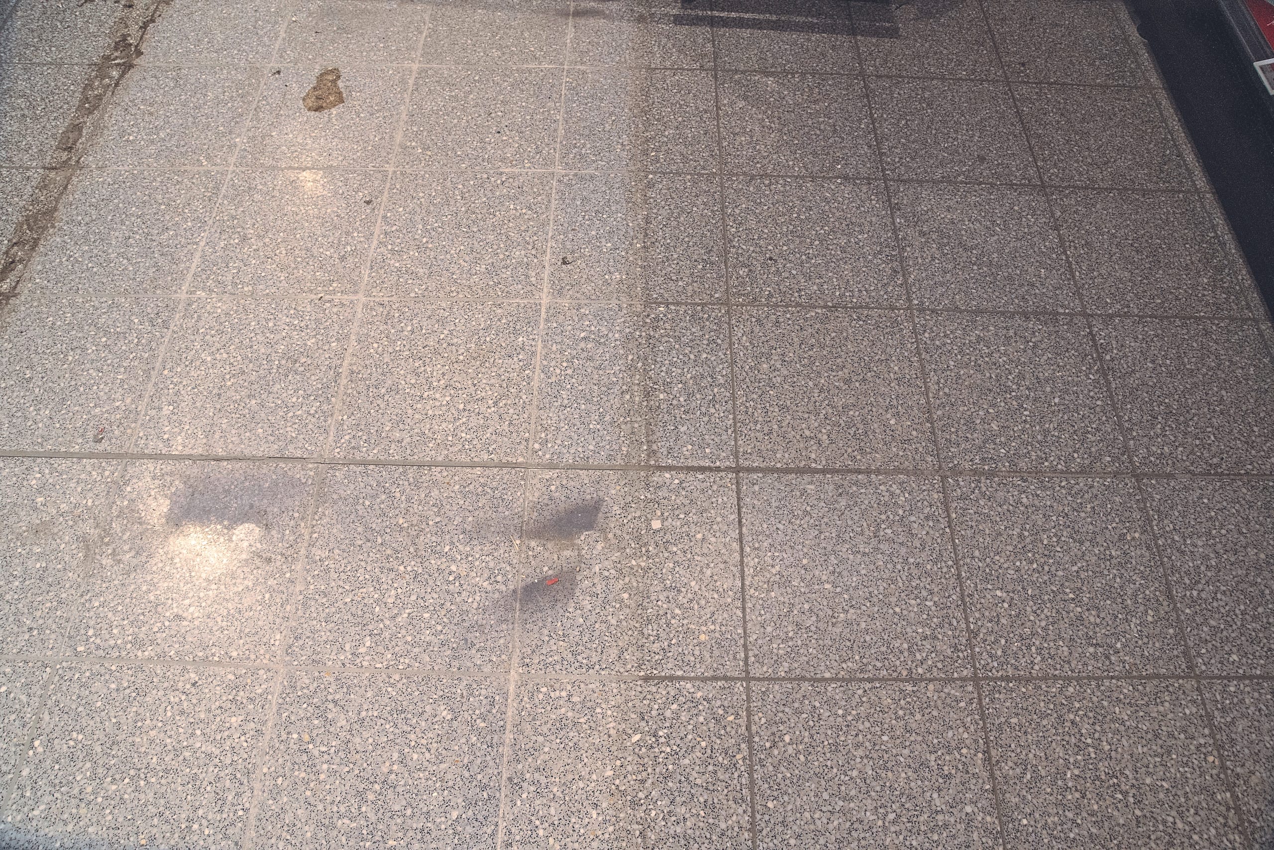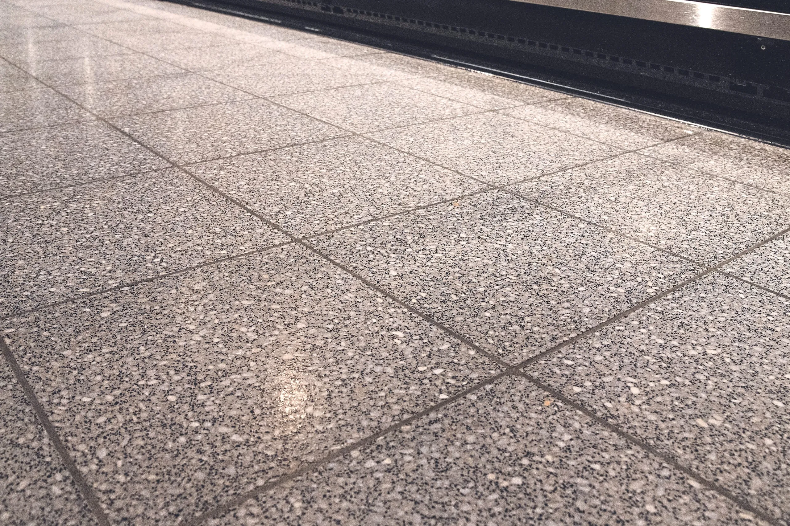 Bei der Sanierungsreinigung des Betonwerksteins nach dem Gmatic-Verfahren musste besonderes Augenmerk auf den 800 Quadratmeter großen Fußboden der Mall gelegt werden, weil dieser, bedingt durch die Handdesinfektion in der Corona-Zeit, im Eingangsbereich besonders angegriffen war. Aufgrund der unterschiedlichen Nutzung und Belastung in der Vergangenheit war der Betonwerkstein zudem unterschiedlich geschädigt. Schmutz wanderte zum Teil in die Oberfläche ein, Glanzwert und Rutschhemmung verschlechterten sich.