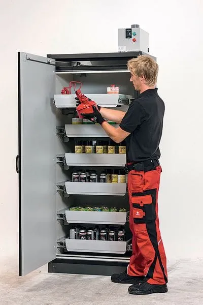 Der Gründauer Sicherheitsschrank-Hersteller Asecos hat eine neue Produktserie entwickelt, die auf die Anforderungen von Handwerksbetrieben zugeschnitten ist. Die neuen Q-CLASSIC-30-Schränke ermöglichen, entzündbare Flüssigkeiten, die täglich in Werkstätten und Arbeitsräumen zum Einsatz kommen, brandgeschützt zu lagern. Speziell für kleinere Betriebe bringt Asecos einen neuen „Typ-30“-Sicherheitsschrank für die Kleinmengenlagerung von entzündbaren Flüssigkeiten auf den Markt. Dabei bedeutet die Kennzeichnung „Typ 30“, dass Gefahrstoffe im Brandfall innerhalb des Schranks mindestens 30 Minuten lang vor Feuer geschützt sind. Das hilft, Mitarbeiter rechtzeitig in Sicherheit zu bringen, wenn ein Gefahrenfall eintreten sollte.