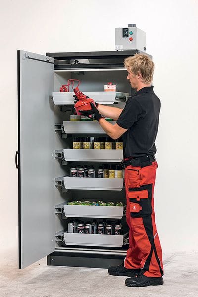 Der Gründauer Sicherheitsschrank-Hersteller Asecos hat eine neue Produktserie entwickelt, die auf die Anforderungen von Handwerksbetrieben zugeschnitten ist. Die neuen Q-CLASSIC-30-Schränke ermöglichen, entzündbare Flüssigkeiten, die täglich in Werkstätten und Arbeitsräumen zum Einsatz kommen, brandgeschützt zu lagern. Speziell für kleinere Betriebe bringt Asecos einen neuen „Typ-30“-Sicherheitsschrank für die Kleinmengenlagerung von entzündbaren Flüssigkeiten auf den Markt. Dabei bedeutet die Kennzeichnung „Typ 30“, dass Gefahrstoffe im Brandfall innerhalb des Schranks mindestens 30 Minuten lang vor Feuer geschützt sind. Das hilft, Mitarbeiter rechtzeitig in Sicherheit zu bringen, wenn ein Gefahrenfall eintreten sollte.