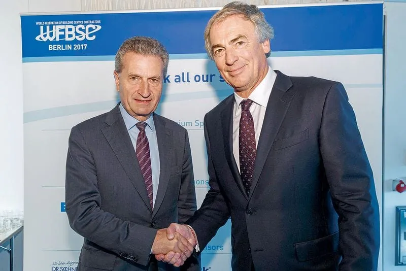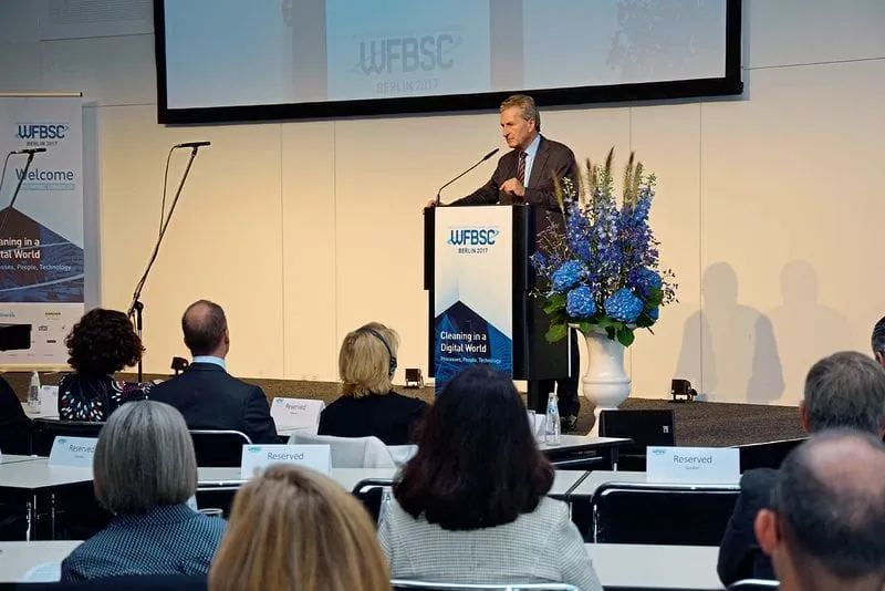 Günther Oettinger, EU-Kommissar für Haushalt und Personal, hob die Gebäudedienstleistung als starken Wirtschaftssektor hervor und forderte die Branche auf, die Digitalisierung als Chance zu sehen. Gebäudedienstleister müssten in die Planung neuer Gebäude und anderer infrastruktureller Einrichtungen involviert werden. Er sprach sich deutlich für einen offenen, freien und fairen Handel aus. Das Thema Datenschutz, die Entwicklung digitaler Grundkompetenzen aller Mitarbeiter sowie die Investition in die Infrastruktur von Immobilien seien laut Oettinger die Standards, die es im nächsten Schritt zu entwickeln gelte.