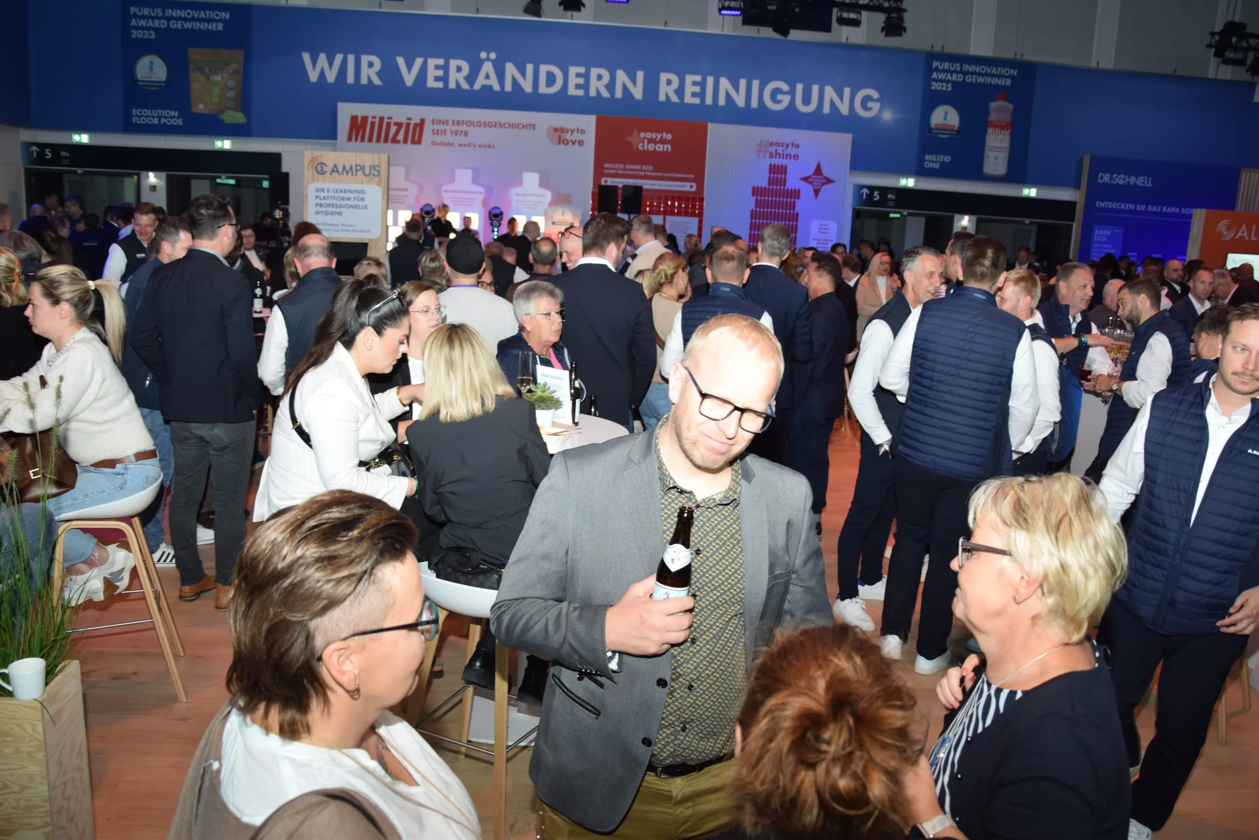 Auch an den anderen Tagen war nach Messeschluss einiges los in den Hallen – bei Standpartys von Aussteller wie Numatic, Blink, Buzil und Mobiloclean.