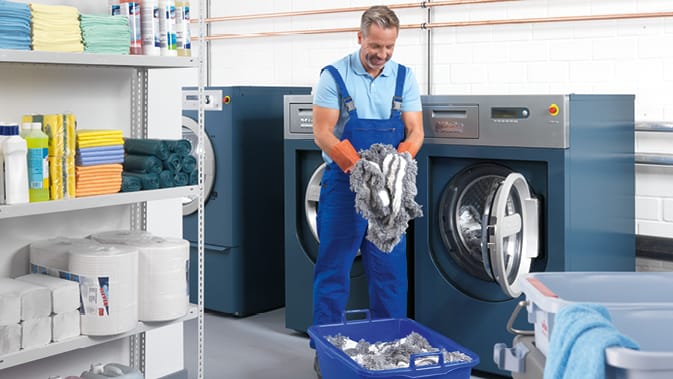 Mopps und Tücher sollten mit einem thermischen oder chemothermischen Desinfektionswaschverfahren gereinigt werden. - © Miele