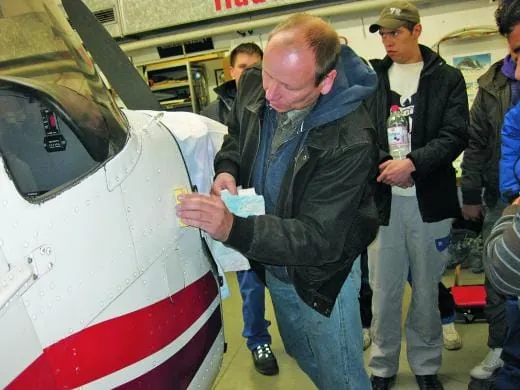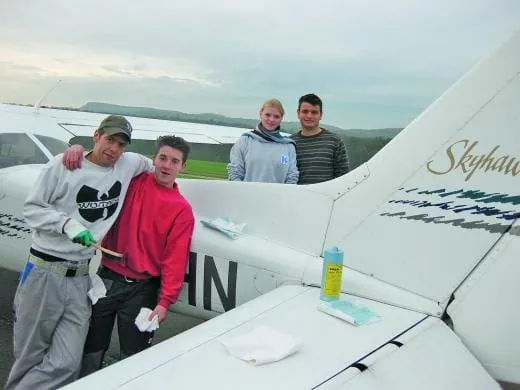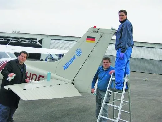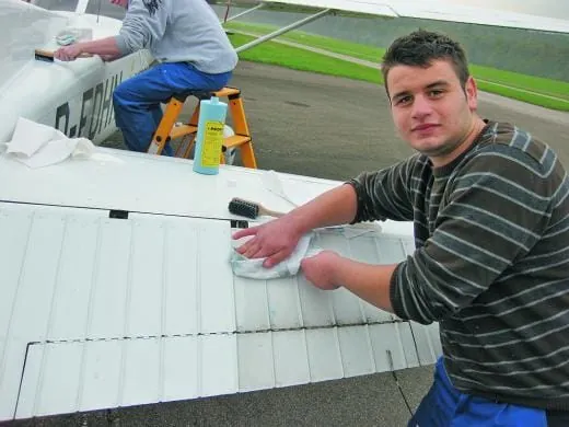 Die Jugendlichen legen sich mächtig ins Zeug und geben ihr Bestes. Vor allem das Polieren der Unterseite der Flügel und des Rumpfes finden sie sehr anstrengend, weil es sich um Überkopfarbeit handelt. Auch haben sie großen Respekt vor der Technik der Flugzeuge und sind sehr besorgt, dass sie nichts zerstören. Interessant und neu ist für die Schüler auch, dass das Mittel zur Reinigung und Pflege der Cessnas für die Luftfahrt geprüft sein muss.