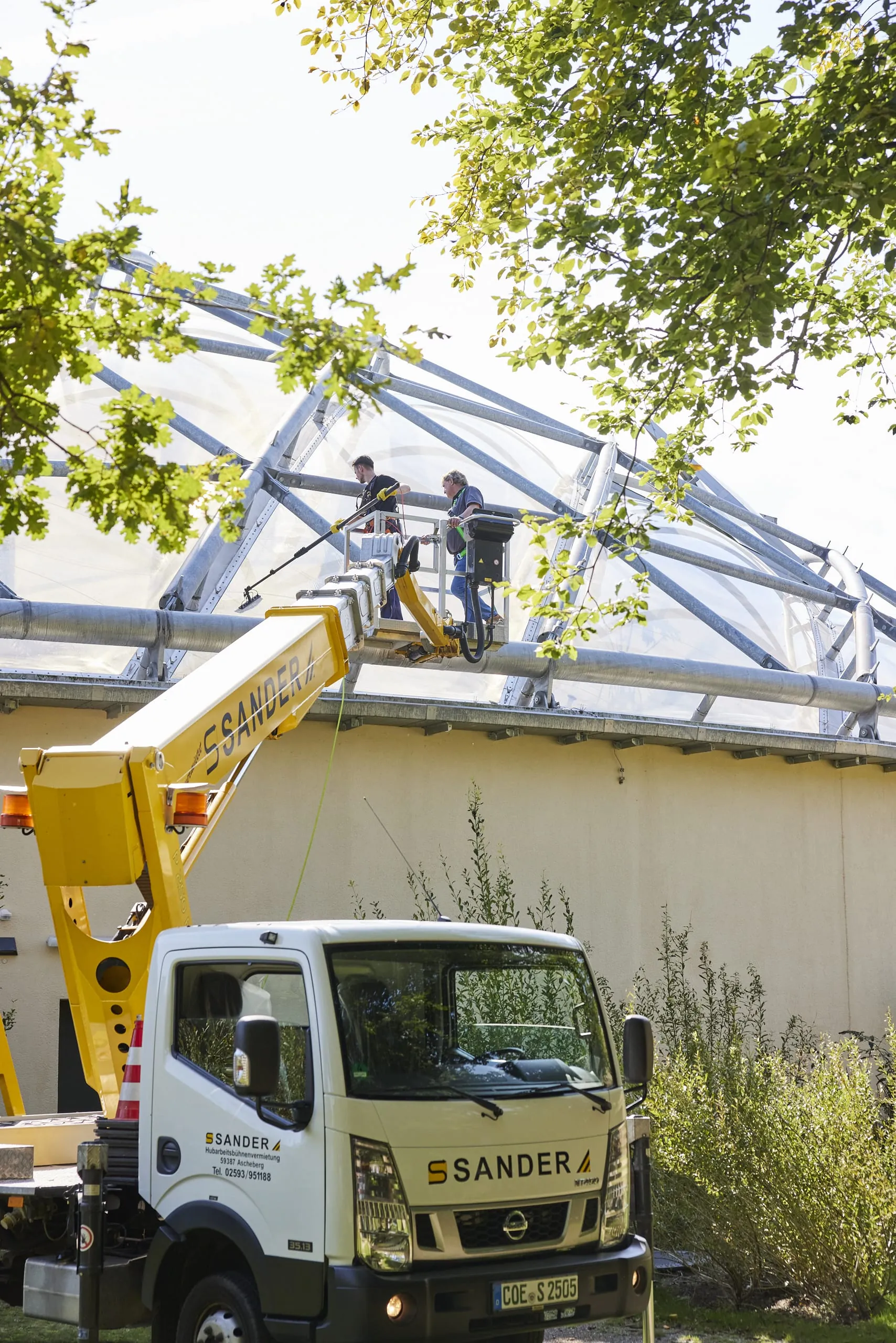 Die Teilnehmer hatten herausfordernde Aufgaben zu bewältigen. Neben der Reinigung feststehender Glasflächen in rund zwölf Metern Höhe mit Hilfe einer Hubarbeitsbühne und der Reinigung des Kuppel-Daches der Meranti-Halle musste von einem Rollgerüst aus die Dachfassade am Klippschliefer-Terrarium mit einem Hochdruckreiniger bearbeitet werden. Außerdem stand die Reinigung des Bodens der Forscherwerkstatt in mehreren Arbeitsgängen inklusive Politur auf dem Programm.