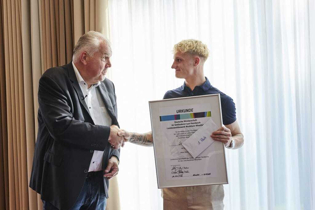 David Fiegenbaum belegte am Ende den ersten Platz und qualifizierte sich somit für die Teilnahme an der Deutschen Meisterschaft im Gebäudereiniger-Handwerk 2025 im Heidepark in Soltau. Ausgebildet wurde er in der Firma GM – Glas- und Gebäudereinigung Mercan in Münster.