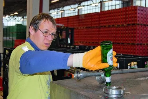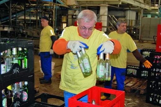 Zu den Hauptaufgaben der Werkstattmitarbeiter gehört das Aussortieren von Fremdflaschen, die über die Pfandrückgabe in die Brauerei gelangt sind. „16 bis 25 Prozent des bei uns eingehenden Leerguts unterscheiden sich in Farbe und Design von den unternehmensspezifischen Flaschen“, unterstreicht Dr. Ines Zekert, Pressesprecherin des Leipziger Brauhauses zu Reudnitz. Deshalb werden sie nach dem Aussortieren an die Brauereien zurückgeliefert, aus denen sie ursprünglich in den Handel gelangt sind.