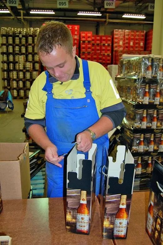 Die Zusammenarbeit bewährt sich seit nunmehr vier Jahren so gut, dass das Team in diesem Jahr auch Sonderaufträge übernommen hat. So werden neben den Elferkästen auch Gebinde von fünf Flaschen Bier samt Glas als „Genießer-Sets“ in attraktive Geschenkkartons verpackt. „Leistungen, die aufgrund relativ geringer Stückzahl nicht maschinell bewältigt werden können. Unsere Werkstattmitarbeiter lernen aber dabei, im Team zu arbeiten, und entwickeln Qualitätsbewusstsein“, beleuchtet Claudia Nitschke den pädagogischen Hintergrund. Das baut Selbstvertrauen auf und keiner der Beschäftigten zwischen 21 und 60 Jahren erzählt mehr, dass er in einer Werkstatt für behinderte Menschen arbeite. „Alle identifizieren sich zu 100 Prozent mit der Brauerei“, freut sich die Gruppenleiterin.