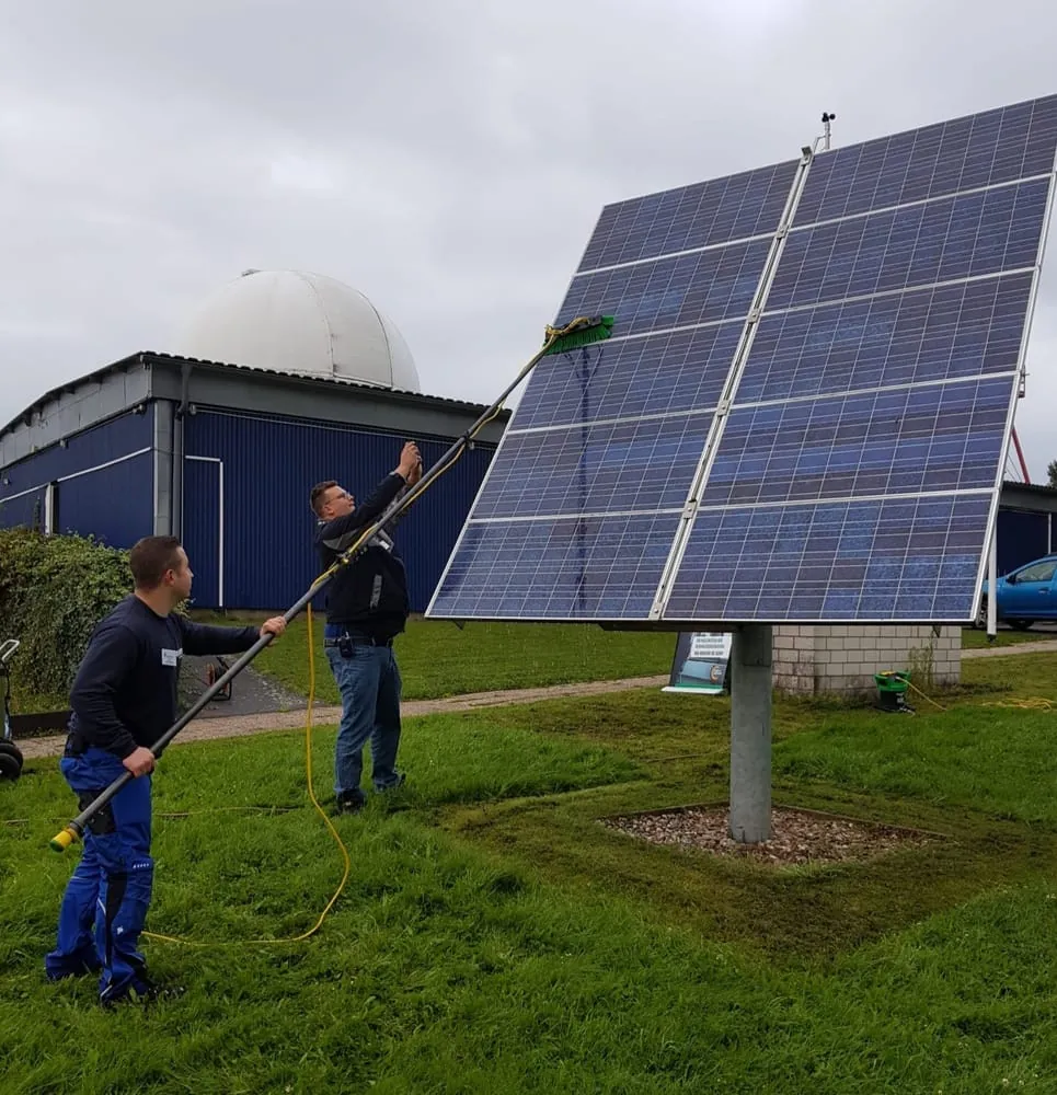 Eine der Aufgaben an der Sternwarte Bochum: die Photovoltaikanlagenreinigung mit Stangensystem und entmineralisiertem Wasser.
