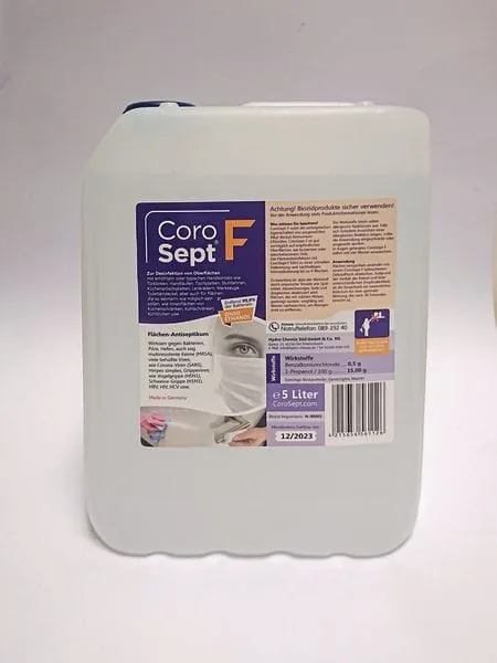 Bei CoroSept-F (Hydro Chemie Süd) sieht dies laut Hersteller anders aus: Das Produkt ist aufgrund seines reduzierten Alkoholgehalts oberflächenschonend und weist durch die Verwendung eines speziellen Tensids eine langanhaltende antiseptische Wirkung auf. Das Desinfektionsmittel greift Keime physikalisch an und bildet einen bis zu drei Tage anhaltenden Infektionsschutzfilm. Auf diese Weise kann es nicht nur gegen SARS-CoV-2 eingesetzt werden, sondern auch gegen andere behüllte Viren, Bakterien, Pilze sowie Hefen.