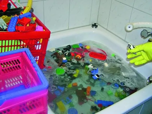 Noroviren in einem Kindergarten Desinfektionsbad für Legosteine