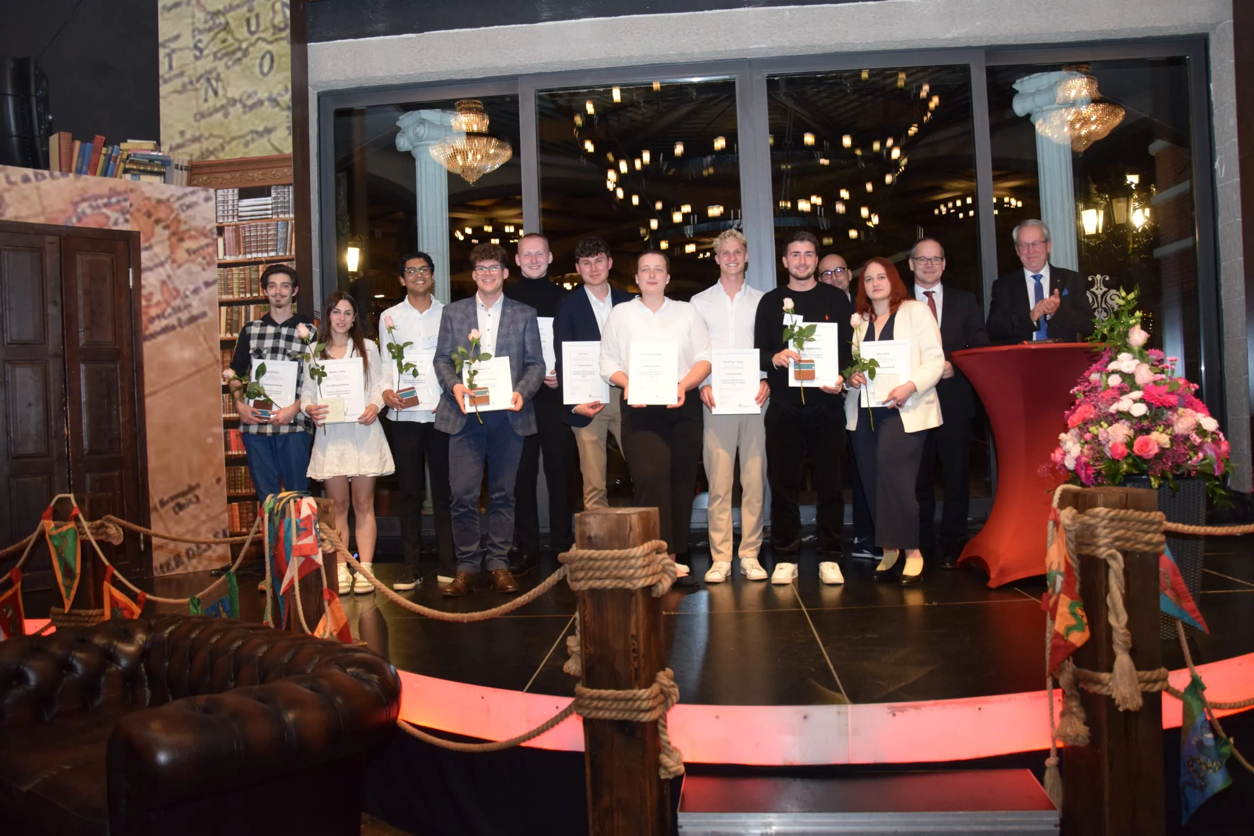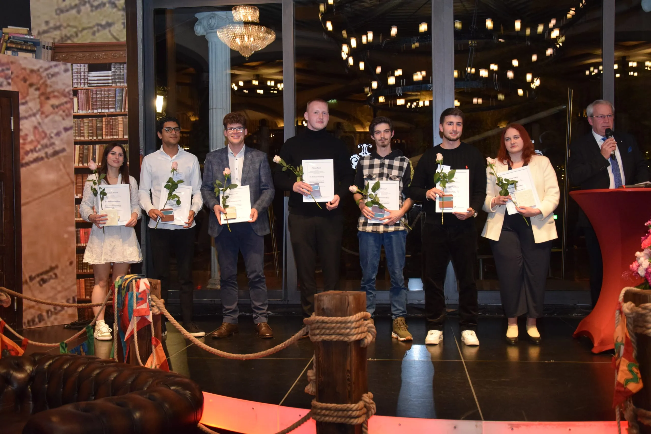 Urkunden und Glückwünsche gab es auch für (v.li.) Michelle Teuser (Schleswig-Holstein), Gushan Rajasansi (Hamburg), Jonathan Ott (Baden-Württemberg), Tobias Neeck (Berlin), Yannik Knauf (Sachsen-Anhalt), Albion Haxhimiftari (Bayern) und Maria Glanz (Hessen).