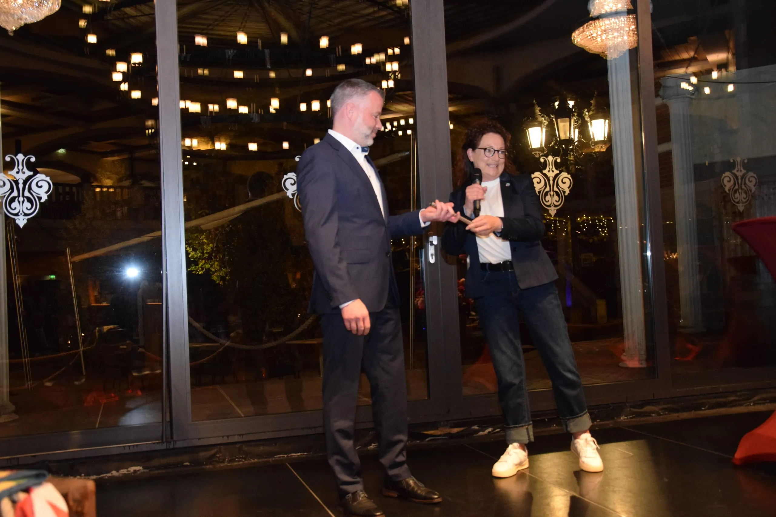 Thomas Bansemir, Lehrlingswart der Landesinnung Hessen, nahm nach der Siegerehrung von Martina Hannig (Landesinnung Niedersachsen) den Staffelstab für die Ausrichtung der Deutschen Meisterschaft im Gebäudereiniger-Handwerk 2026 in Hessen entgegen.