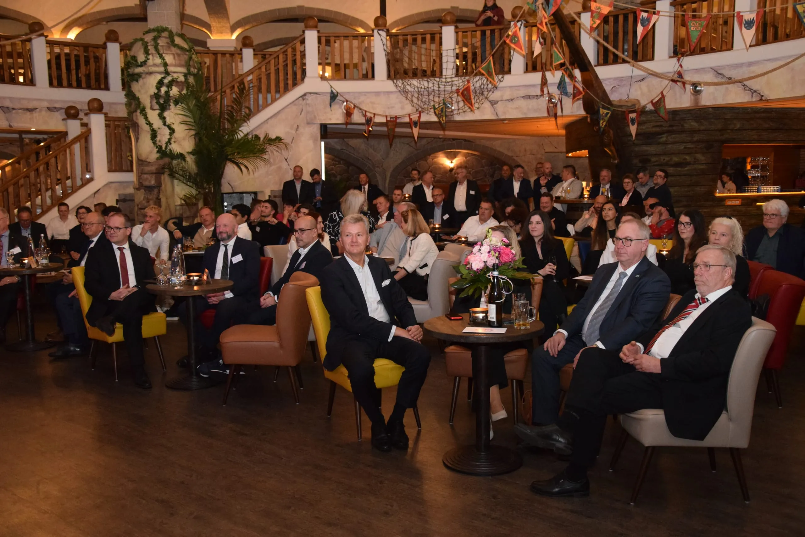 Am Abend des Wettbewerbstags wurden die Sieger geehrt. Zahlreiche Gäste aus Innungen und Betrieben waren zur Feier in der "Captain Hook Bar" im Heide Park gekommen, darunter auch Grant Hendrik Tonne, Wirtschaftsminister von Niedersachsen, BIV-Hauptgeschäftsführer Wolfgang Molitor und Niedersachsens Landesinnungsmeister Frank Bleitner (Sitzgruppe links; v.li.).