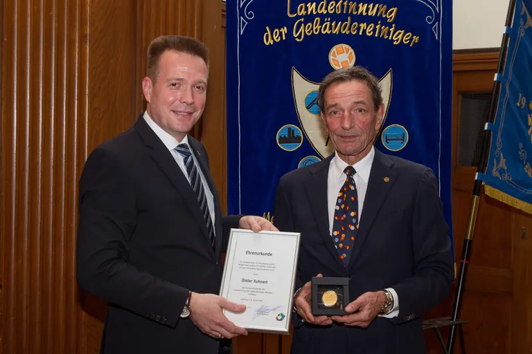 Beim Neujahrsempfang in den Räumen der Handwerkskammer Hamburg ehrte die Landesinnung der Gebäudereiniger Nordost den langjährigen Bundesinnungsmeister und Landesinnungsmeister der Landesinnung Nord, Dieter Kuhnert, mit der Verdienstmedaille.
