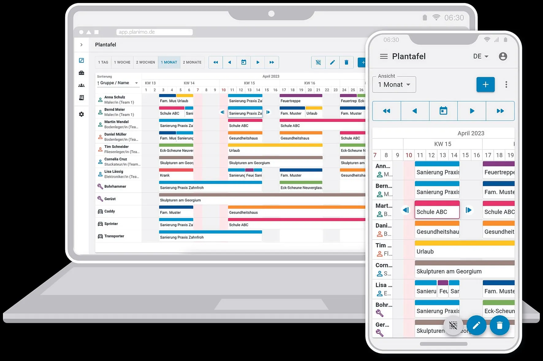 Mit der digitalen Plantafel Planimo lassen sich Personal und Ressourcen von überall planen und verwalten. Als Web-App ist die Software plattformunabhängig nutzbar.