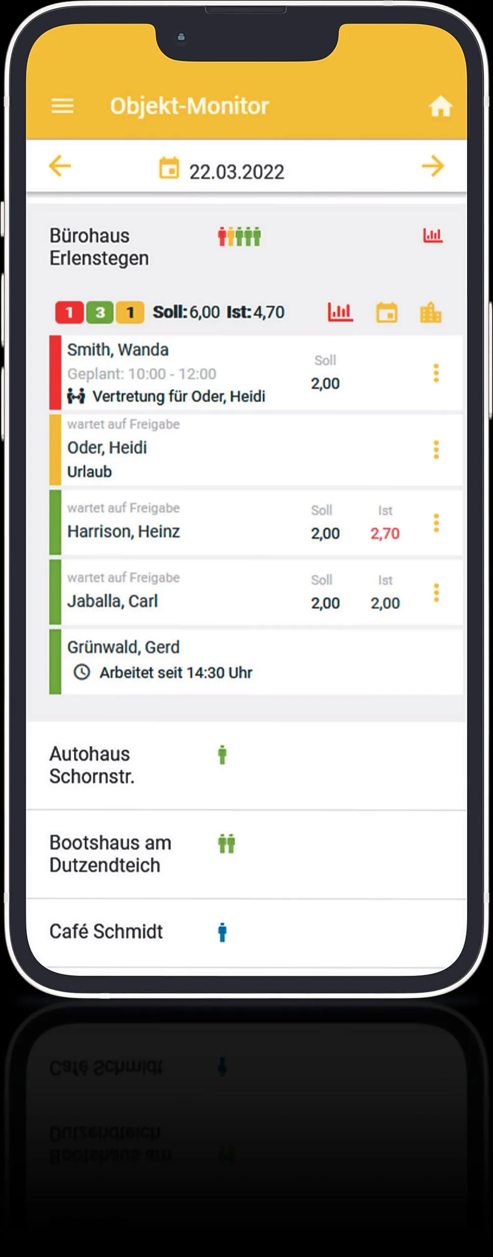 Ein Objekt in München war das erste, das sowohl die Testphase und die Schnittstellenprogrammierung als auch den anschließenden Start der Implementierung begleitet hat. Helen Keleta und Mirjana Angelovski aus dem dortigen GRG-Team hat der neue Ansatz von Anfang an überzeugt. Beide bestätigen unisono: "Mit nur zwei Klicks anmelden – das funktioniert super. Und das Beste ist, dass wir keine Kopien von den Zetteln mehr machen müssen, sondern alle unsere Arbeitszeiten auf dem Handy jederzeit sehen können."