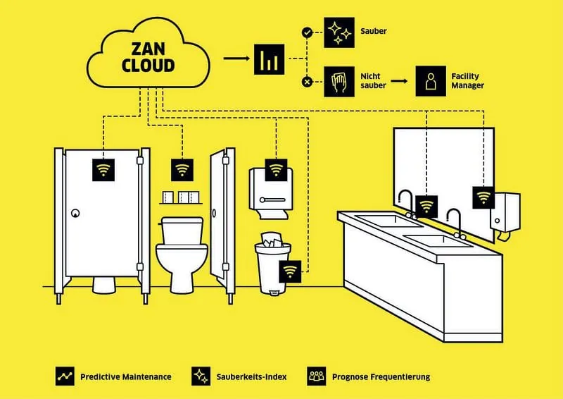 Die visuelle Kontrolle beispielsweise von Sanitärbereichen – Sauberkeit, Füllstände von Seifen- oder Handtuchspendern, Füllstand Mülleimer et cetera – kann vor diesem Hintergrund ein echter Zeitfresser sein. Hinzu kommt, dass das Auffüllen beziehungsweise Auswechseln von Verbrauchsmaterial je nach Gegebenheiten ­unwirtschaftlich und damit nicht nachhaltig sein kann.