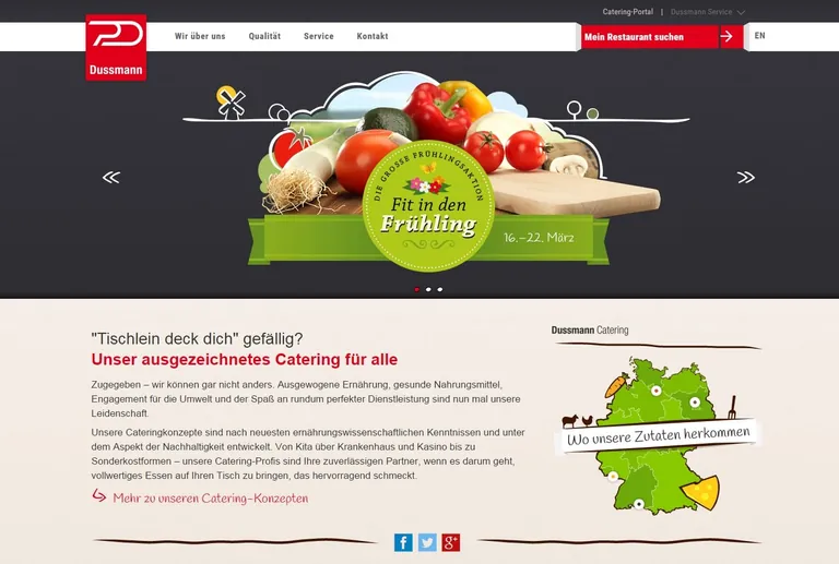 Das Portal berichtet darüber, wie Dussmann Service seine Qualität sicherstellt. Allen Dussmann-Konzepten gemeinsam sind die Regionalität bei Einkauf und Speiseplanung sowie der nachhaltige Ansatz. Eine interaktive Karte nennt die Lieferanten in allen Bundesländern. Der Tischgast kann unter „Mein Restaurant“ sein jeweils eigenes Betriebsrestaurant auswählen. Für jedes Gericht sind die Allergene und Zusatzstoffe gekennzeichnet.