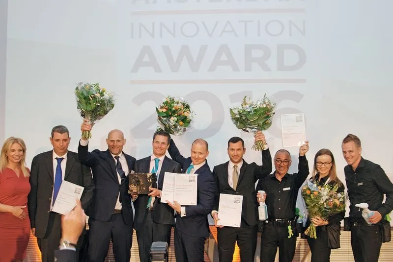 ISSA/Interclean 2016 in Amsterdam: 800 Aussteller aus mehr als 45 Ländern zeigten im Messezentrum RAI ihre Produkte für die professionelle Reinigung. Vier davon wurden gleich am ersten Messetag mit dem Innovation Award ausgezeichnet. Als Gesamtsieger setzte sich die Anwendung Augmented Reality Suma Revoflow von Sealed Air/Diversey Care durch.