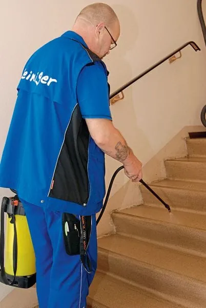 In der Grundreinigung von Eingangsbereichen und Treppenhäusern in knapp 70 Wohngebäuden der Berliner Wohnungsgenossenschaft Marzahner Tor kommt ein Expressgrundreiniger zum Einsatz, welcher im Sprühverfahren angewendet wird. Daraus ergeben sich zahlreiche Vorteile, unter anderem eine enorme Zeitersparnis.