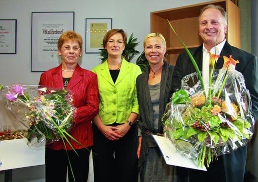 Martina Göhringer, Vertreterin der Industrie- und Handelskammer Karlsruhe, beglückwünschte Inge Kobsch und Uwe Reisky für 25 Jahre Treue zur Helmut Schoch GmbH. Als Anerkennung überreichte sie den beiden Gebäudereinigern im Rahmen einer kleinen Firmenfeier die IHK-Ehrenurkunden. „Gerade im Handwerk prägen die Mitarbeiter das Bild des Unternehmens beim Kunden“, sagte Göhringer in ihrer Ansprache. „Es ist schön zu sehen, dass die Helmut Schoch GmbH die Arbeit ihrer Mitarbeiter wertschätzt und von Anfang an ein gutes Händchen bei der Mitarbeiterauswahl beweist. Auch dies ist ein Weg, um dem Fachkräftemangel entgegenzuwirken.