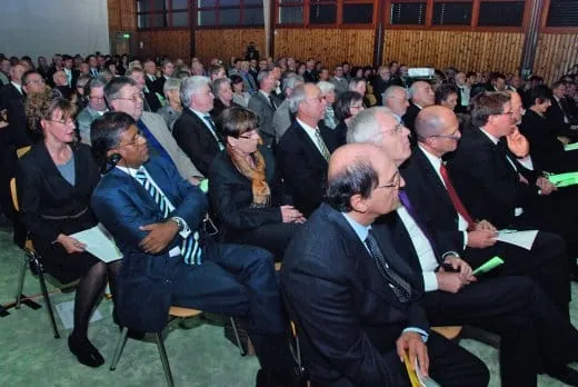 - Unter den Gästen waren Vertreter aus Politik und Verwaltung, Wirtschaft, Verbänden und dem schulischen Umfeld. Dazu gehörten nicht nur die früheren Schulleiter Dieter Kuhn (bis 2010) und Roland Kilgus (bis 2001), sondern auch Delegationen aus Schulen in mehr als 20 Ländern, mit denen die Gewerbliche Schule partnerschaftlich verbunden ist. Die weiteste Anreise hatte Gamini Manchanayake aus Colombo in Sri Lanka. Deutlich kürzer war die Fahrt für Dr. Paolo Fabbri aus Parma in Italien, der den Festvortrag über „Die europäische Dimension in der beruflichen Bildung“ hielt, und für Britta Kasperczak, Koordinatorin der Abteilung Gebäudereinigung an der Max-Taut-Schule in Berlin, mit der die Metzinger eine offizielle Partnerschaft eingegangen sind. International, innovativ und ideenreich: Die Gratulanten am Rednerpult bescheinigten der Gewerblichen Schule hervorragende Leistungen und lobten das tolle Engagement der Beteiligten. „Diese Schule ist beispielhaft aufgestellt“, sagte Reutlingens Landrat Thomas Reumann. Elternvertreter Wilhelm Kobler sprach von einer großen pädagogischen Leistung und hob die Kompetenz hervor, mit der Fachwissen ebenso wie zwischenmenschliche Wertschätzung vermittelt werde. Schulpräsidentin Dr. Susanne Pacher (Tübingen) dankte für die engagierte Arbeit einer Schule, die auch alle Meistermöglichkeiten biete. „Wir sind sehr froh, Heimatstadt dieser gewerblichen Schule zu sein“, sagte Metzingens Oberbürgermeister Dr. Ulrich Fiedler und Dr. Joachim Eisert, Hauptgeschäftsführer der Handwerkskammer Reutlingen, machte deutlich, wie wichtig die Gewerbliche Schule für das Handwerk sei. Walter Herrmann, stellvertretender Hauptgeschäftsführer der Industrie- und Handelskammer Reutlingen, schloss sich den lobenden Worten an.